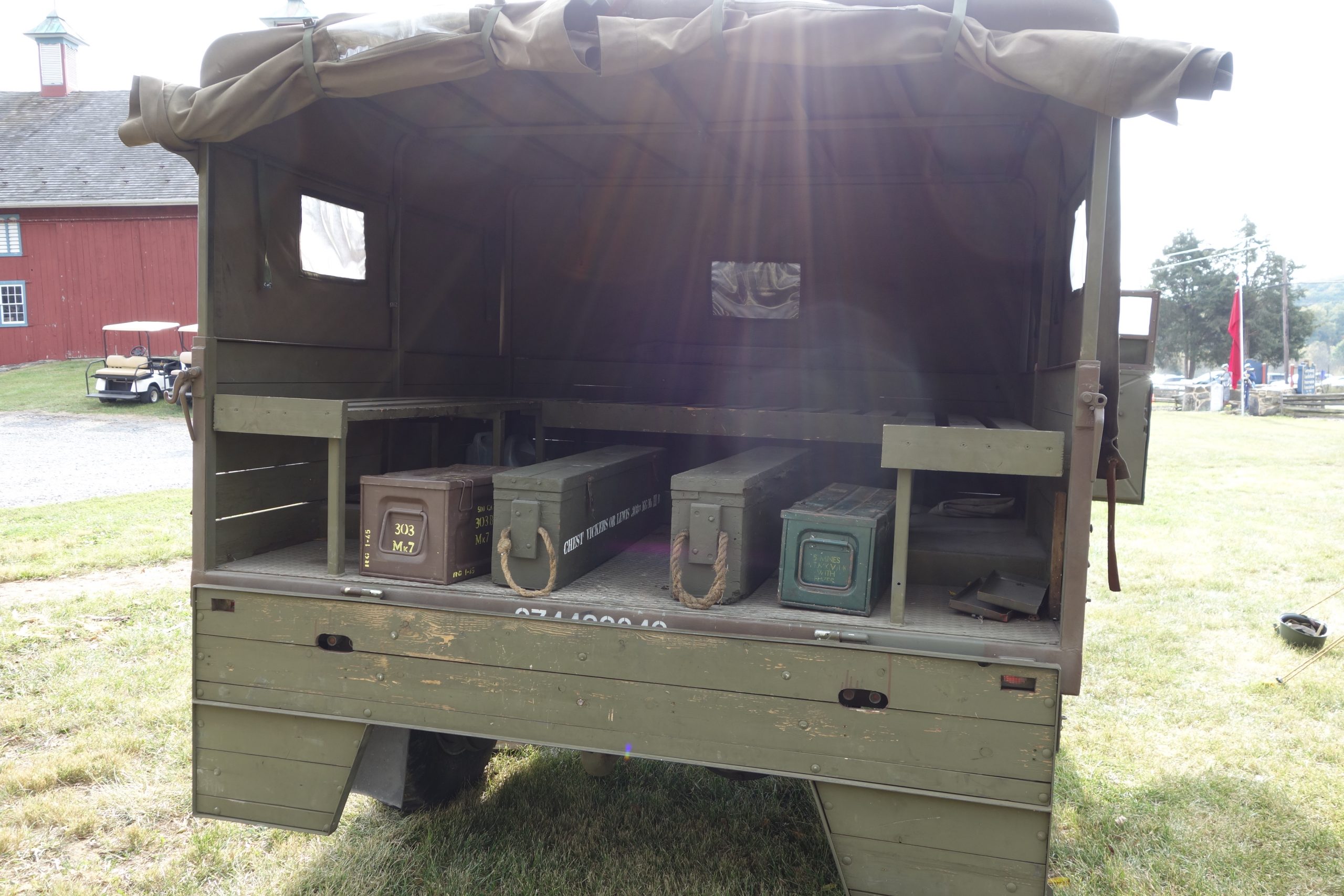 A side view of the early war CMP C60 truck. Notice the sand channels displayed beneath the rear wheels. These were kept with the truck to negotiate difficult ground in the Libyan desert. In the rear bed, a pre-war Bofors 37mm A-tk gun has been mounted enportee which was very common in North Africa. Miroslaw from Wheels of Liberation Museum hauled this truck and gun several hours down from PA just for this display.