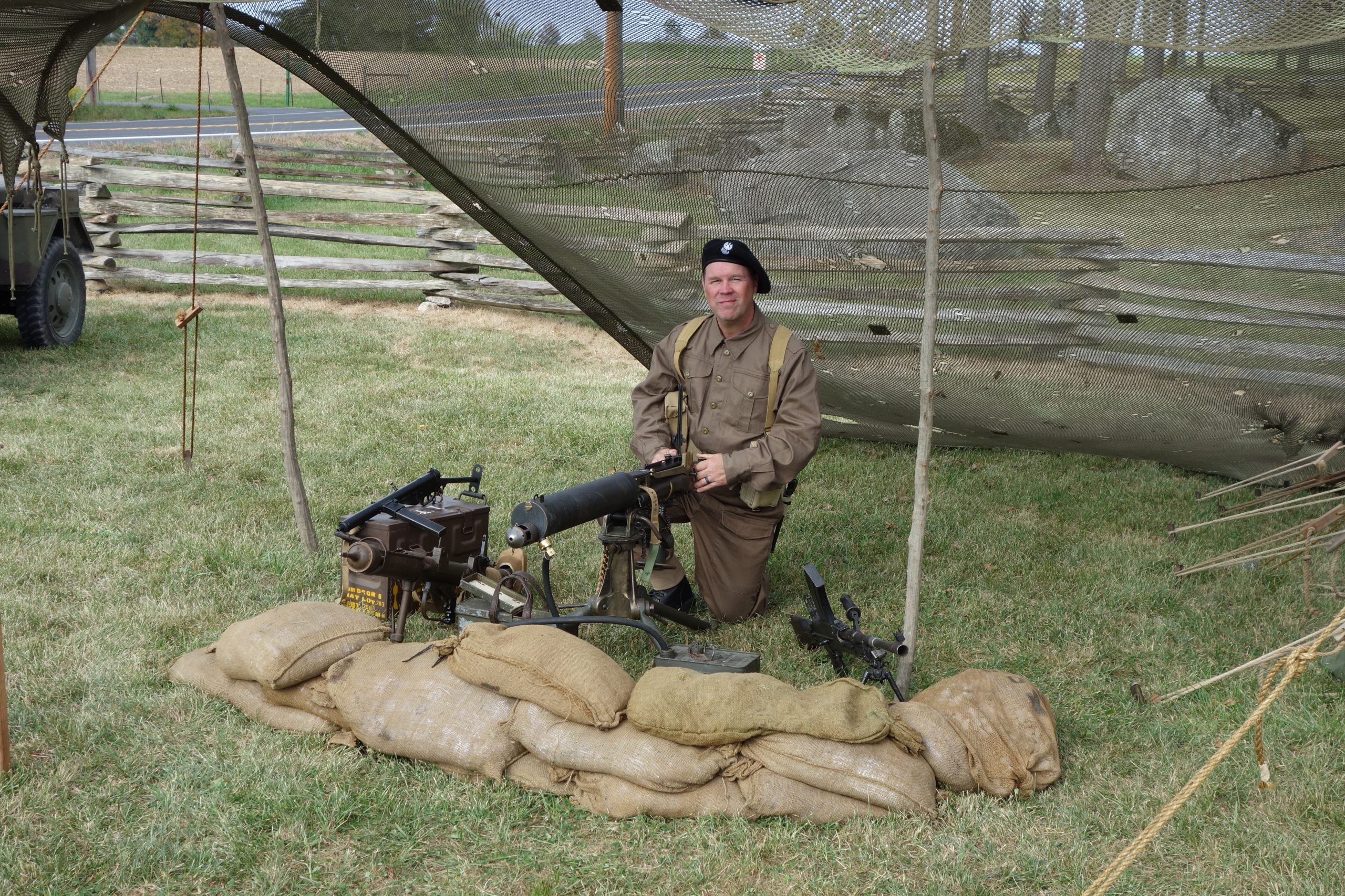 Dennis displays the Bren Mk I as deployed in the AA position. It was very effective for at no time during the day were we staffed by low flying aircraft.