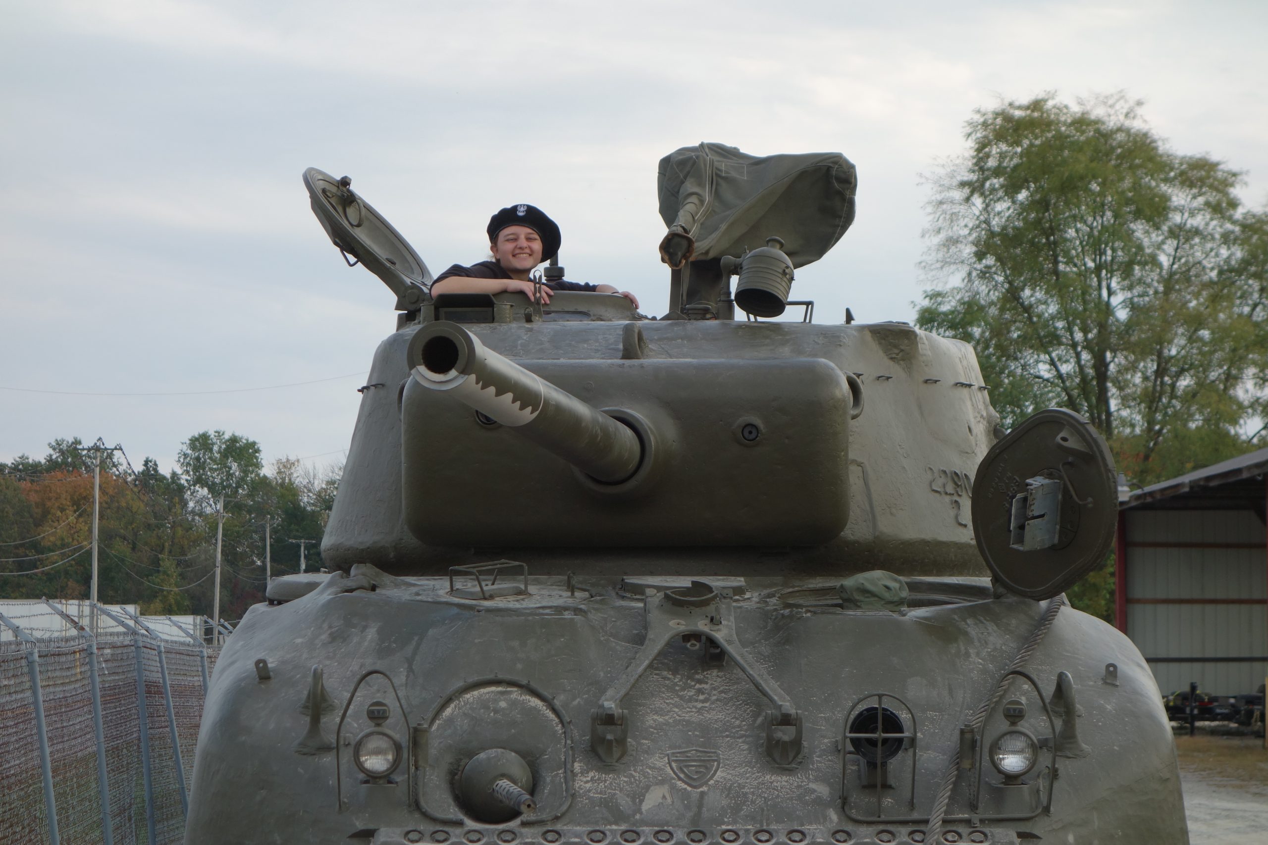 Trooper Holden Parker, 1st Tank Regt. asks himself why none of these vehicles were designed for men over six feet tall.