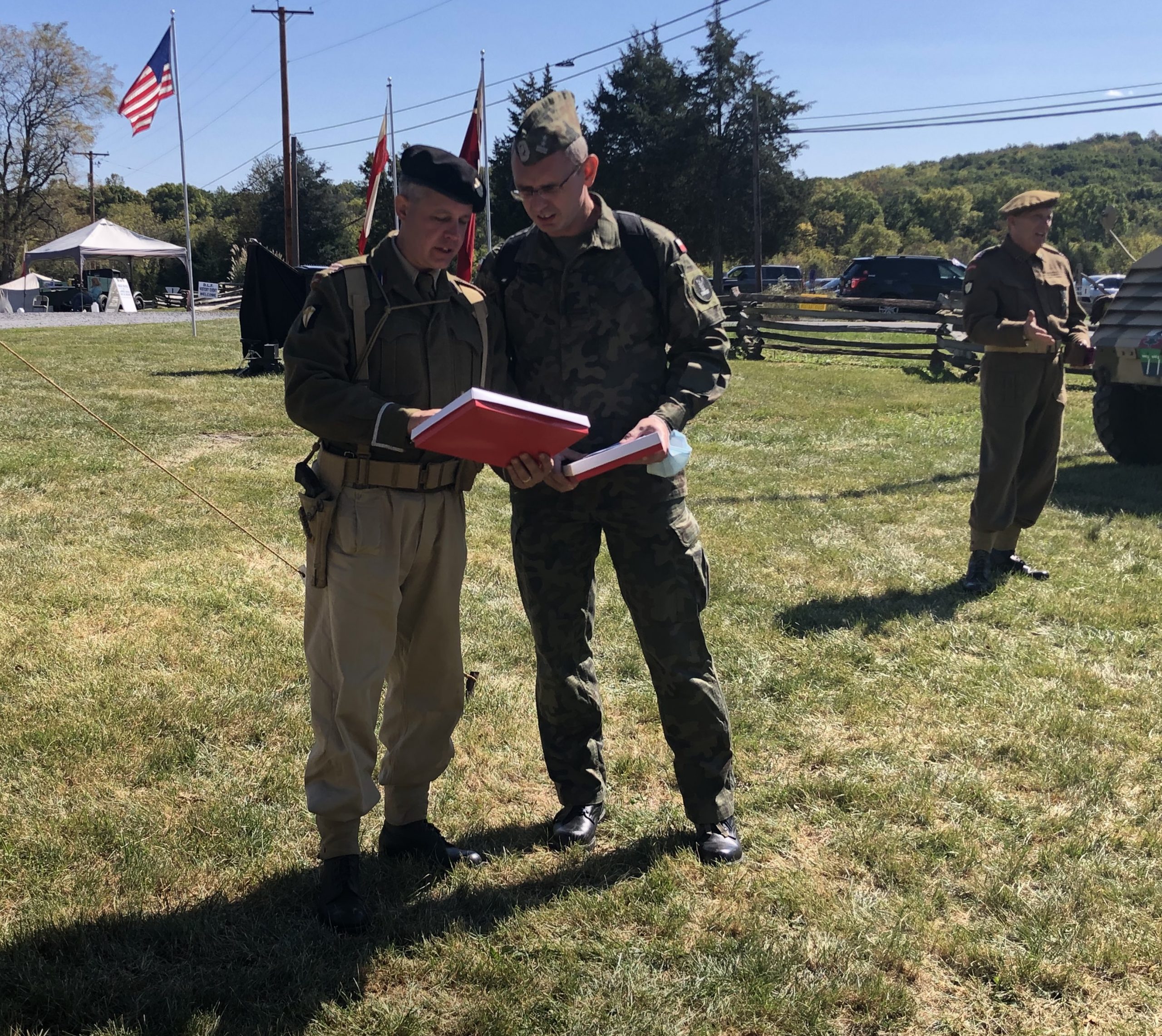 Lt.Col. Budniak visits from D.C. and presents our group with an official Polish National Flag from the Ministry of Defense.