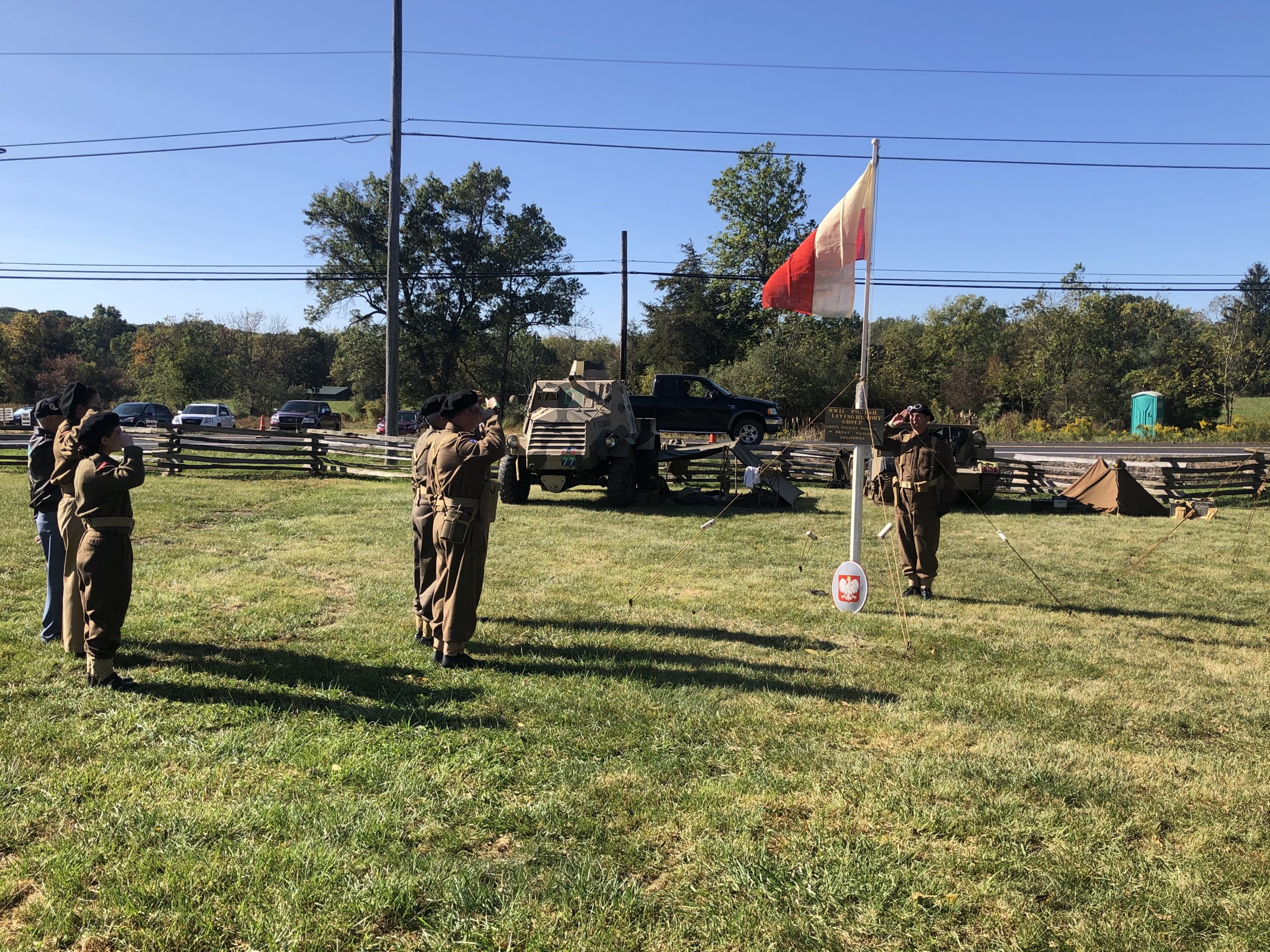 Saturday morning our contingent falls in to raise the national colors. We were honored to have WWII Polish-American veteran Casey Bukowski join the formation.